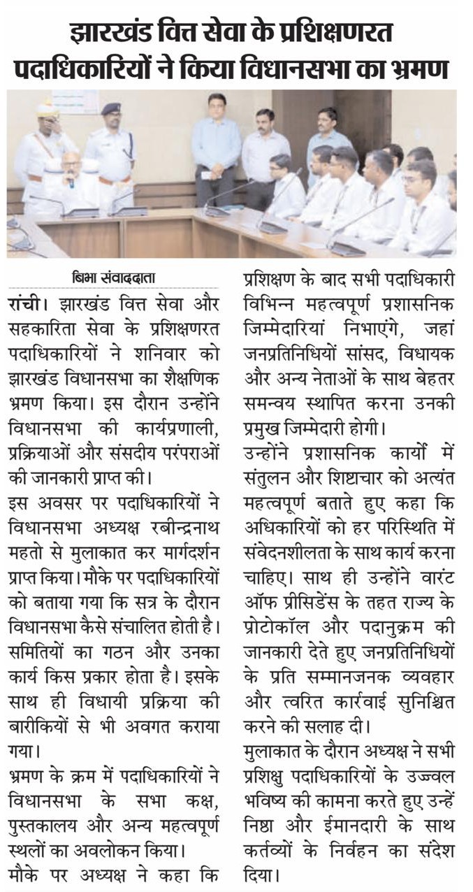 षष्ठम झारखण्ड विधान-सभा का प्रथम सत्र दिनांक 12/12/24 की कार्यसूची