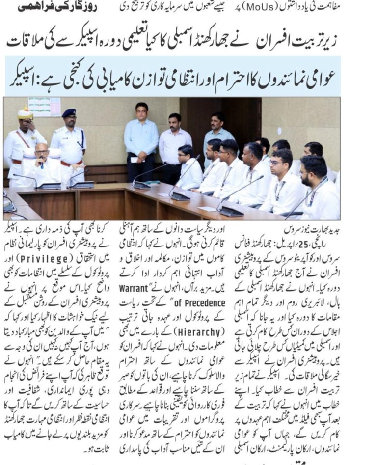 षष्ठम झारखण्ड विधान सभा के द्वितीय (बजट) सत्र दिनांक 25/02/2025 की कार्यसूची