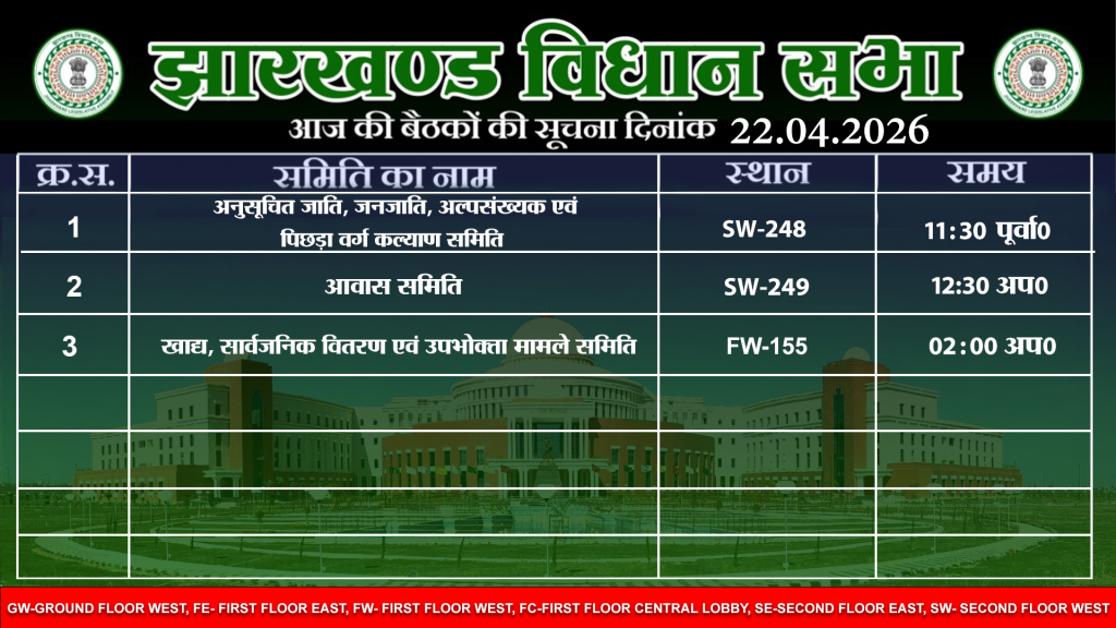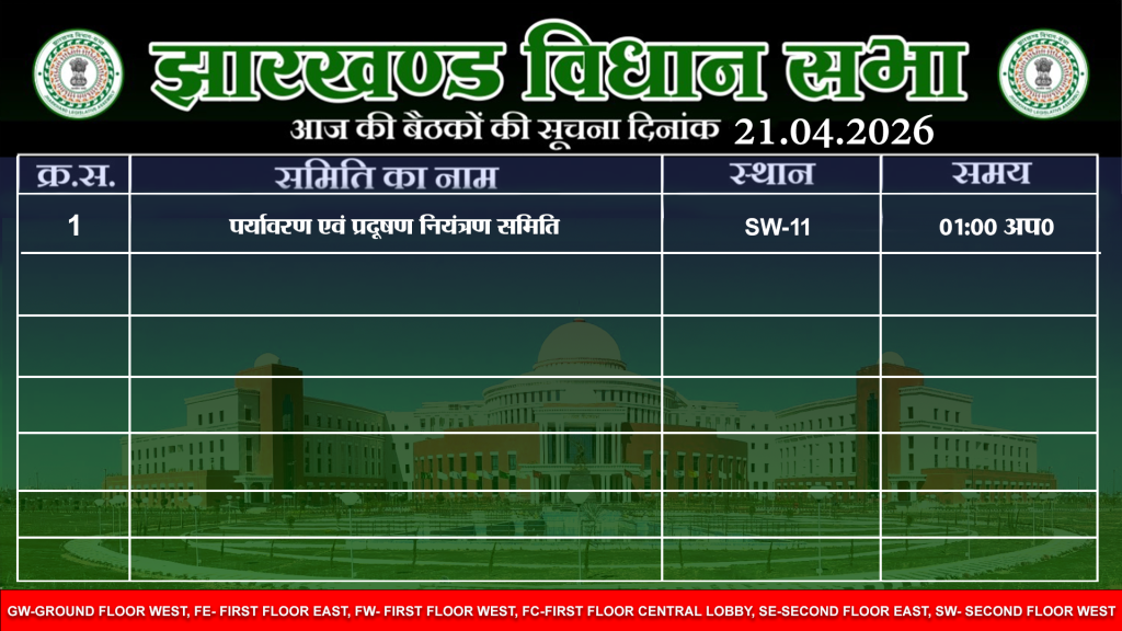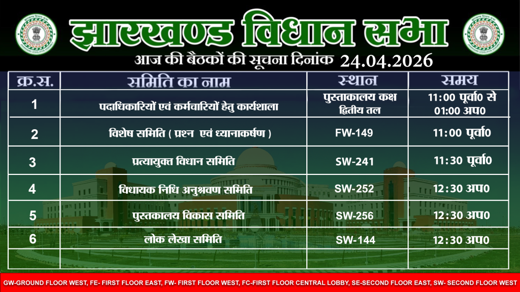 पंचम झारखण्ड विधान-सभा का मानसून सत्र दिनांक 26/07/2024 की कार्यसूची