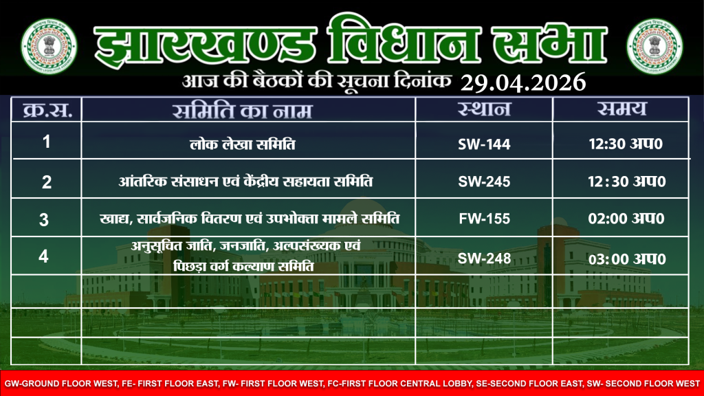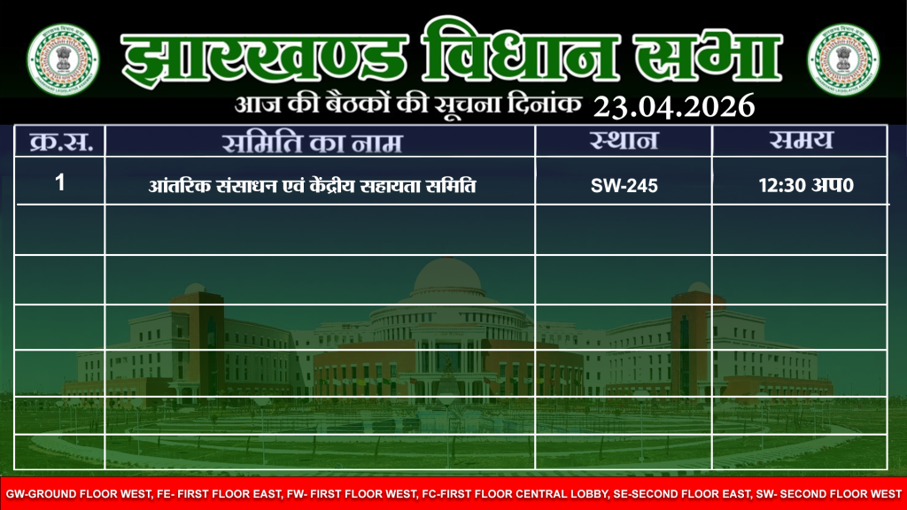 षष्ठम झारखण्ड विधान सभा के पंचम (बजट) सत्र दिनांक 26/02/2026 की कार्यसूची