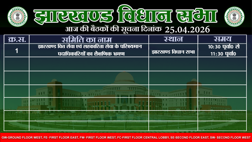 षष्ठम झारखण्ड विधान सभा के पंचम (बजट) सत्र दिनांक 25/02/2026 की कार्यसूची